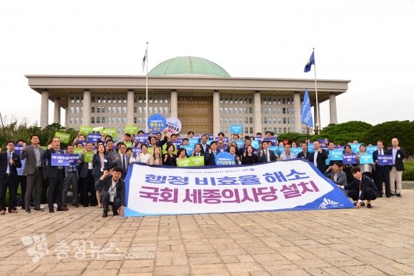 20일 오후 국회본관 앞에서 이춘희 세종시장, 이영세 세종시의회 부의장를 비롯한 이윤희 시의원, 이강진 정무부시장, 행정수도완성과 국가균형발전을 위한 지방분권세종회의(상임대표 김준식·정준이)와 시민사회단체 등은 국회세종의사당 설치를 촉구하는 퍼포먼스를 펼치고 있다. 저작권자 © 충청뉴스 무단전재 및 재배포 금지 최형순 기자 다른기사 보기 기사가 마음에 드셨나요? 충청뉴스 좋은 기사 후원하기 1,000원 3,000원 5,000원 10,000원 30,000원 50,000원 직접입력 비회원 약관동의하기 ※ 소중한 후원금은 더 좋은 기사를 만드는데 쓰겠습니다.