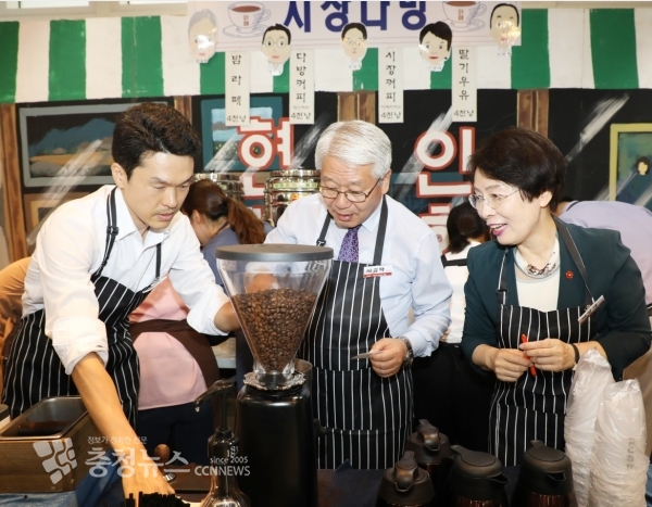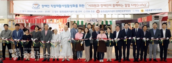 세종특별자치시의회(의장 서금택)는 24일 종촌종합복지센터에서 열린 ‘중증장애인 직업재활사업 활성화를 위한 시장다방(market & cafe)’에서 장애인들과 함께 뜻깊은 시간을 보냈다.