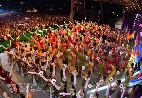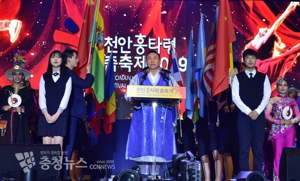 이후 구본영 시장이 “흥으로 하나되고! 춤으로 하나되는! 2019 천안흥타령춤축제! 가슴 벅찬 개막을 선언합니다”라고 개막을 선언해 ‘천안흥타령춤축제2019’의 본격적인 시작을 알렸다.