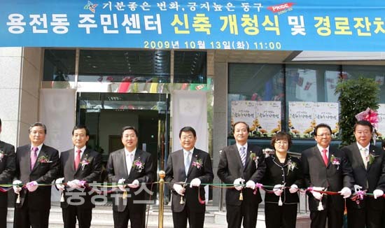 한편 이날 행사는 화려한 식전행사에 이어 오전 11시 식사 및 축사 등 개청식과 함께 기념행사로 테이프 커팅, 현판 제막식, 기념식수 순으로 1시간 동안 진행됐으며 식후행사로 용전동 주민자치위원회를 중심으로 한 자생단체에서 지역 노인들에게 경로 위안잔치를 베풀어 개청식의 의미를 더했다.