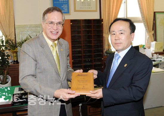 충남도는 14일 세계축제협회 (IFEA World) 스티븐 우드 슈메이더 회장이 이완구 충남도지사를 방문해 3개 부문의 상패와 상장을 전달했다고 밝혔다.