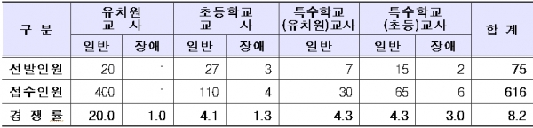 대전교육청, 75명 선발에 616명 지원, 지난해 7.3 대 1 대비 경쟁률 높아져