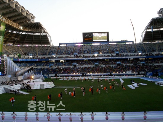 이날 개막식 사전행사인 알림마당에서는 대전홍보영상과 환영퍼포먼스가 펼쳐졌으며 식전행사인 울림마당에서는 웃다리 농악 등의 한마당행사 및 선수단 환영 물결 퍼포먼스가 진행됐다.