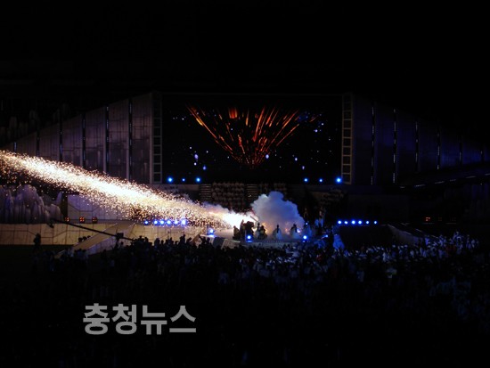 또 공식 행사인 축제마당에서는 차기개최지인 경상남도 선수단 입장을 시작으로 각 시도 대표선수단 및 해외동포선수단 입장 후 7일간의 열전을 알리는 성화가 점화됐다.