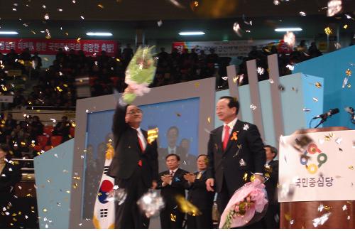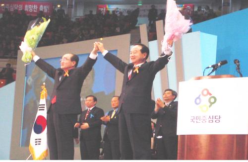 국민중심당은 17일 잠실 올림픽 경기장에서 당직자와 당원 등 1만5천여명이 참석한 가운데 중앙당 창당대회를 갖고 국회의원 5명과 1명의 광역단체장을 갖춘 원내 제5당으로 공식 출범했다.