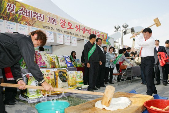 ▲ 대전쌀소비촉진운동-떡메치기하는 박성효시장