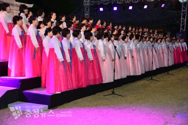 20회 산사음악회 첫무대는 세종연합합창단 150여명이 불국정토, 목포행완행열차를 선보여 분위기를 띄웠다.