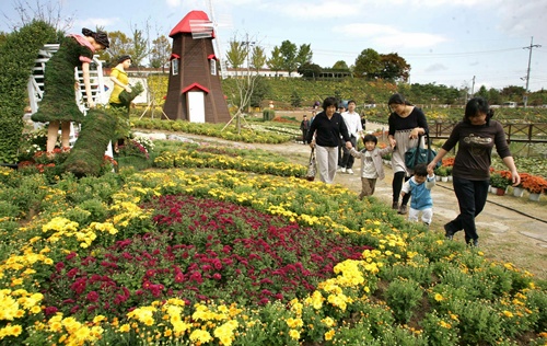 대전 동구 대청호반을 배경으로 개최되고 있는 1억송이 국화의 대향연 '국화향나라전'에서 가장 인기 있는 장소로 국화테마파크가 꼽혔다.
