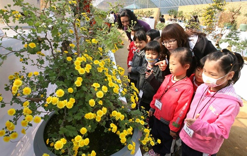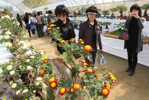 대전 동구 국화향나라전 특별전시행사의 일환으로 열린 전국 국화작품 콘테스트 출품작 전시장에 많은 관람객들이 방문해 문전성시를 이루고 있다.