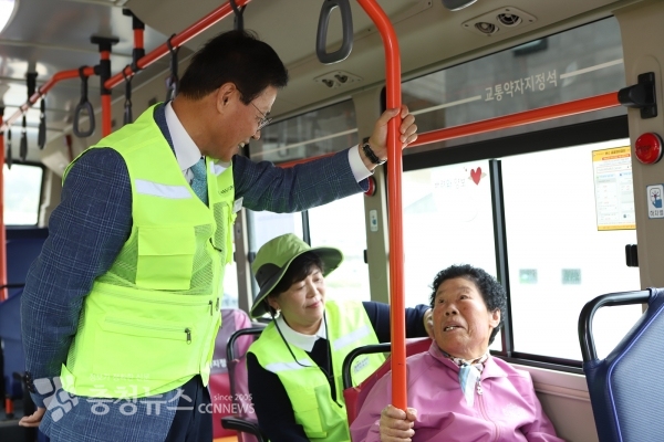 대평장날에 4개 버스 노선에 승하차도우미 자원봉사활동
