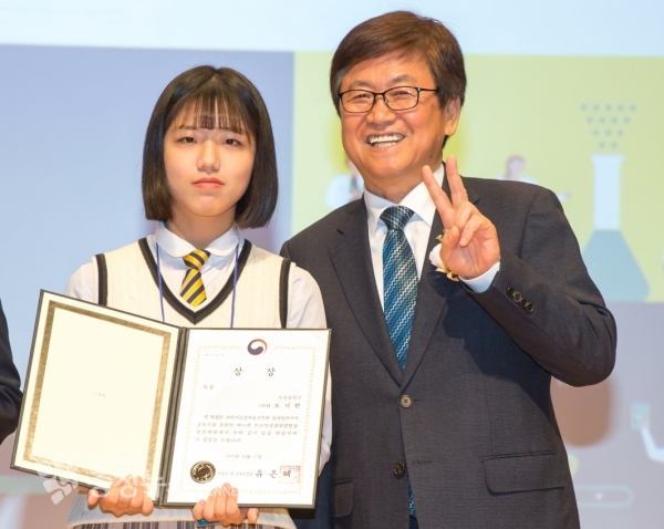두루중학교 3학년 오시현 학생(지도교사 임선화)과 최교진 세종시교육감
