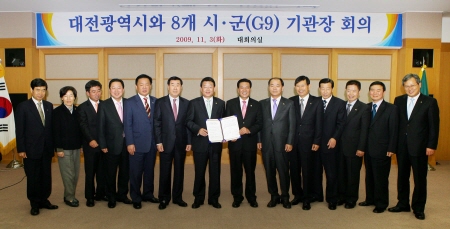 한편. G9은 지난 2007년 박성효 대전시장의 제안으로 대전시와 대전을 중심으로 생활권을 형성하고 있는 충남·북도 시·군 8곳으로 구성한 행정협의체다.