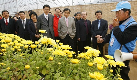대전 동구 추동에서 열리고 있는 ‘2009 대청호 국화향나라전’에 대전시 간부공무원들이 단체 관람에 나섰다.