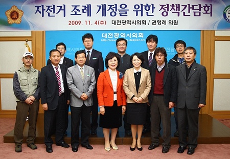 대전시의회 권형례의원은(비례대표, 자유선진당) 4일 오후 의회4층 대회의실에서 최충식 대전시민환경연구소장 외 30여명이 참석한 가운데 ‘자전거조례’ 개정을 위한 정책간담회를 개최했다.