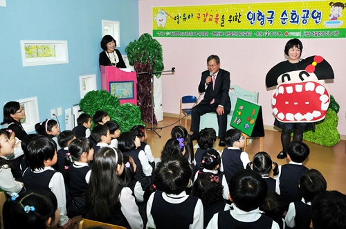구에 따르면 이 교육 기간 동안에는 ‘헨젤과 그레텔’ 동화 구연, 역할극 등 아이들의 눈높이에 맞는 구강교육이 실시된다.