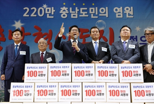 그러면서 양 지사는 “이제 충남 혁신도시 지정은 거스를 수 없는 시대적 소명이 됐다. 100만인 서명을 넘어 충남 혁신도시 지정을 향한 도민들의 열망과 바람은 점점 커지고 있다”며 “도민들의 자존심을 끝까지 지켜내기 위해 충남의 힘을 하나로 모으고, 중앙정부와 국회를 설득하는데 혼신의 노력을 다할 것”이라고 덧붙였다.