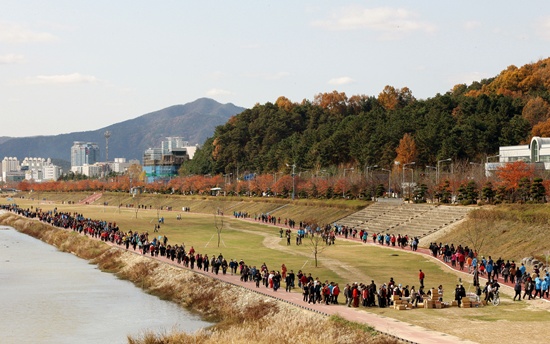 대전 유성구(구청장 진동규)가 11일 어은교 하상부터 대덕대교에 이르는 갑천변 일원에서 2,000여명의 구민이 참여한 가운데 범구민 걷기대회 ‘걸어서 청정유성 속으로’ 를 개최했다.