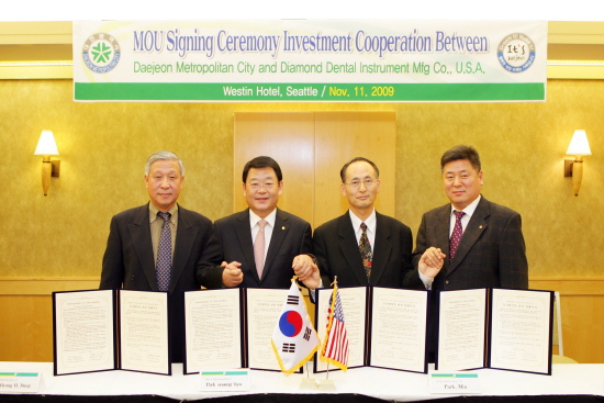 박성효 대전시장은 11일 오후 미국 시애틀 웨스틴호텔에서 대덕연구개발특구 2단계 바이오-메디컬 산업단지 개발 예정부지 내 입주할 미국 첨단의료기업 3곳과 투자협약을 체결했다.