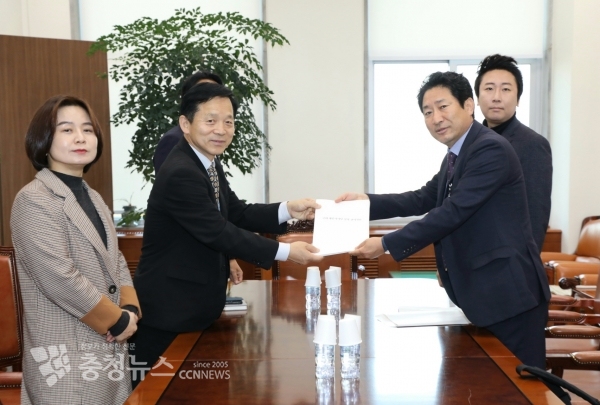 6일 국회 세종의사당 조속한 건립 추진을 건의하는 자료를 국회사무처에 전달하는 세종특별자치시의회 행정수도완성특별위원회(위원장 윤형권), 국가균형발전과 지방분권·상생발전을 위한 충청권공동대책위원회(공동대표 김준식) 우측 윤형권 위원장, 임채성 세종시의회 의원 저작권자 © 충청뉴스 무단전재 및 재배포 금지 최형순 기자 다른기사 보기 기사가 마음에 드셨나요? 충청뉴스 좋은 기사 후원하기 1,000원 3,000원 5,000원 10,000원 30,000원 50,000원 직접입력 비회원 약관동의하기 ※ 소중한 후원금은 더 좋은 기사를 만드는데 쓰겠습니다.