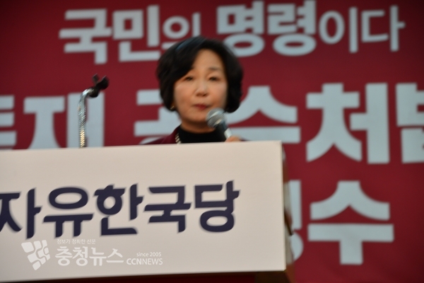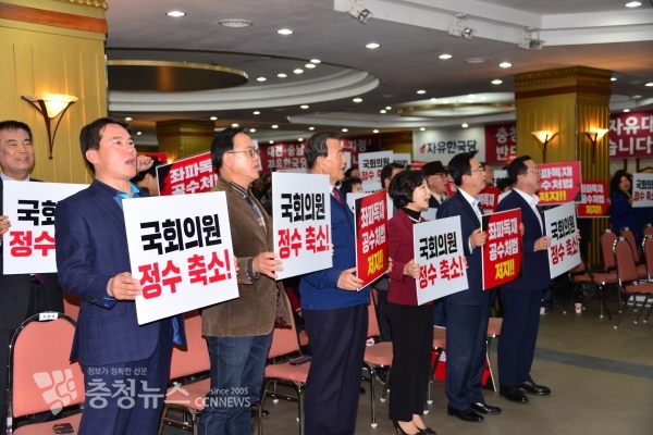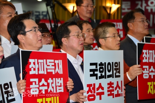 자유한국당은 9일 오후 세종시에서 황교안 대표를 비롯한 대전, 세종, 충남 당직자들이 참석한 가운데 '공수처법 저지 및 정수 축소 촉구 결의대회'를 개최했다.