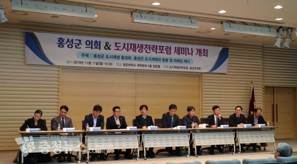 홍성군의회(의장 김헌수)는 11일 청운대학교 홍성캠퍼스 청운홀에서 ‘홍성군 도시재생 활성화, 홍성군 도시계획의 방향 및 미래상 제시를 위한 전략포럼 세미나’를 개최했다.