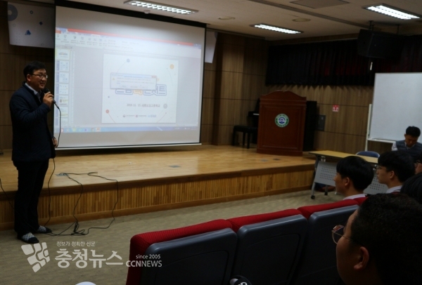 한국원자력연구원과 한국기계연구원의 전문가들이 도담고 학생들을 위해 강연하고 있다.
