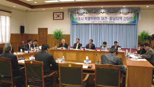 한나라당 세종시 특별위원회(위원장 정의화)가 24일 행정중심복합도시 논란의 핵심 지역인 충남도를 방문해 대전.충남지역 간담회를 갖고 여론 수렴에 들어갔다.