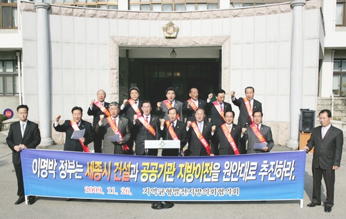 지방의회 의장들은 성명에서 "세종시 건설은 혁신도시 및 기업도시와 함께 '국토균형발전의 핵심'으로, 세종시에 정부부처가 이전하지 않으면 공공기관의 지방 이전은 물거품이 될 것이고, 국민의 염원인 국가균형발전은 좌초될 것"이라고 주장했다.