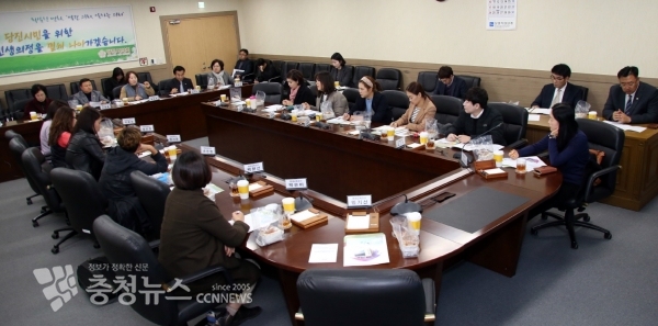당진시의회(의장 김기재)는 19일 시의회 대회의실에서 김기재 의장을 비롯한 시의원 6명과 평생교육사, 평생교육강사 12명 관계공무원 등 총 20여 명이 참석한 가운데 평생교육사 및 강사와의 간담회를 가졌다.