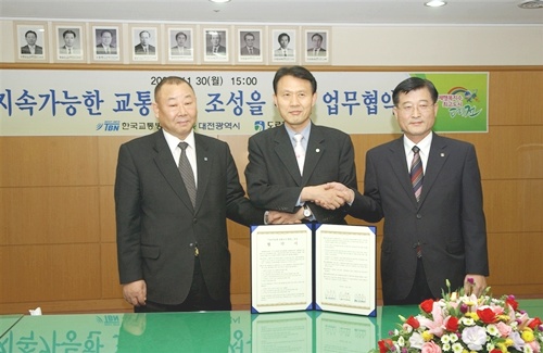 시는 30일 오후 시청 다목적실에서 김홍갑 행정부시장과 이충현 한국교통방송 대전본부장, 김원권 도로교통공단 대전충남지부장이 참석한 가운데 ‘지속가능한 교통도시 대전!!’조성을 위한 업무협약을 체결한다고 밝혔다.