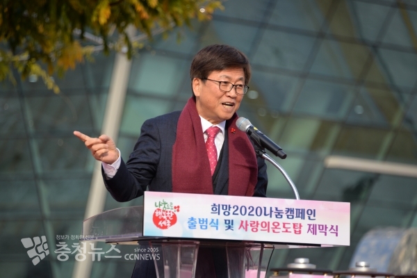 최교진 세종시교육감은 21일 세종시청 광장에서 열린 ‘희망2020나눔캠페인 출범식과 사랑의 온도탑 제막식’에 참석했다.