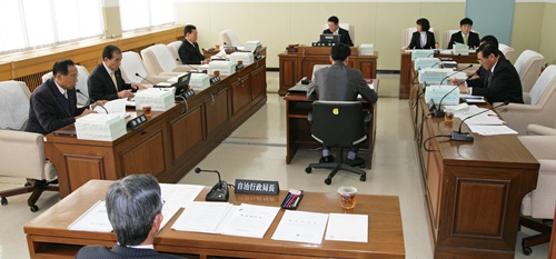 충남도의회 행정자치위원회(위원장 이은태)가 8일 착수한 제3회 추경예산안 및 2010년 본예산 심의에서  자치행정국 소관 제3회 추경예산안과 2010년 본예산에 대한 심의를 진행했다.