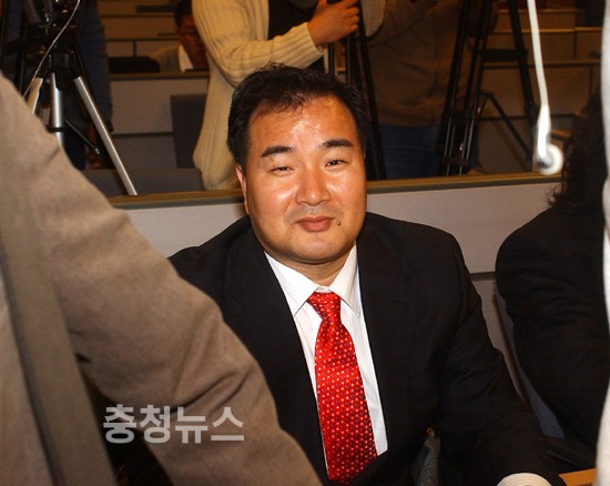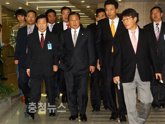▲ 이완구 지사가 국회 기자 회견장을 빠져 나가고 있다