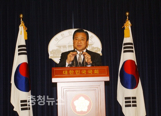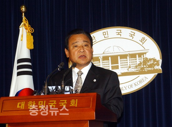 ▲ 이완구 지사 국회 정론관에서 지사직 사퇴 기자회견을 하고 있다.