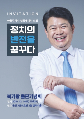 복 전 비서관은 다음달 14일 오후 3시 온양그랜드호텔 2층에서 '정치의 반전을 꿈꾸다-마을주의자 일공세대의 도전'이라는 책을 출간하는 출판기념회를 개최한다.