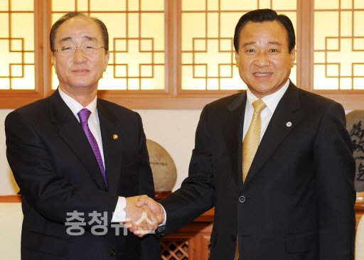 ▲ 무속속 심대평(공주 연기)국회의원 이완구 지사
