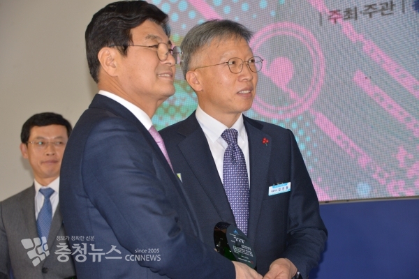 이춘희 세종시장과 김진동 ㈜레이크머티리얼즈 대표 / 충청뉴스 최형순 기자