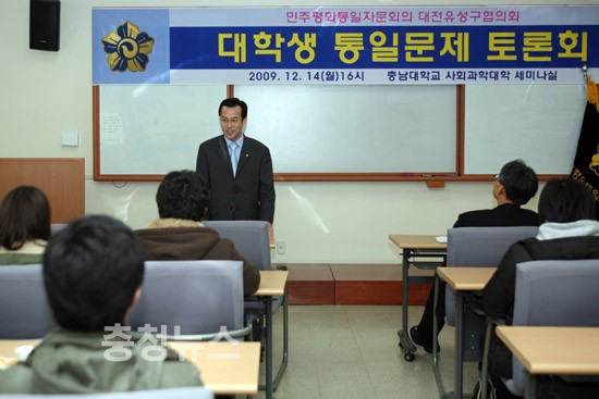 민주평화통일자문회의 대전유성구협의회(협의회장 김문영)는 12월 14일 오후4시 충남대학교 사회과학대학에서 충남대학교학생(외국인 학생포함)과 함께 [대학생 통일문제 토론회]를 개최했다.