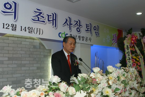 홍인의 충남개발공사 초대사장의 퇴임식이 公社 임직원과 道內 주요기관장 등이 참석한 가운데 14일(월) 홍성소재 公社사옥에서 열렸다.