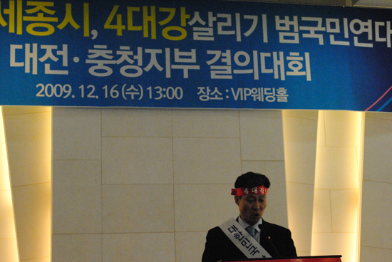 새로운 세종시, 4대강 살리기 범국민연대 대전· 충청지부 결의대회(대전.충청지부장 박인철 )은 16일 오후1시 둔산동 VIP웨딩홀 3층에서 500 여명이 참석한 가운데 대전충청지부 발족식 및 결의 대회를 가졌다.