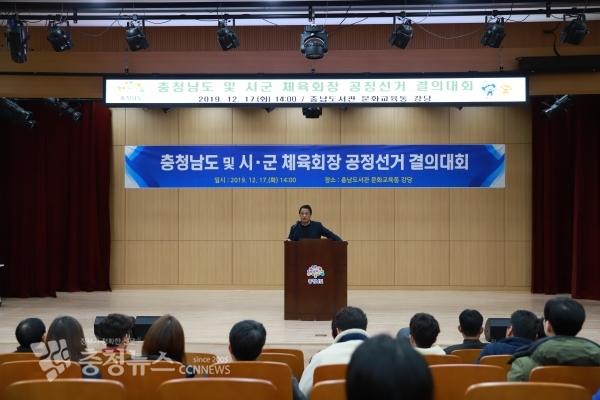 김정철 충남도체육회 선관위 위원장은 충남도서관 강당에서 개최된 ‘충남 및 시군체육회장 공정선거 결의대회’에서 “첫 민선 회장을 뽑는 충청남도체육회장 선거가 한 달 남짓 남았다”며 “현재까지 선거관리위원회 위원들과 충청남도체육회 사무처의 원활한 업무 호흡을 통해 문제없이 진행되고 있고, 남은시간 또한 긴장의 끈을 놓지 않고 투명하고 공명정대하게 선거가 잘 치러질 수 있도록 최선을 다하겠다”고 밝혔다.