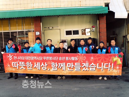 한나라당 대전광역시당은 (사)늘평안복지회에 연탄 및 생필품을 기탁하고, 지난 10일부터 이어진 당협별 순회 봉사활동을 21일 대덕구당협(대화동 일대)와 23일 서구갑당협(변동 일대)의 봉사활동으로 마무리 하였다.