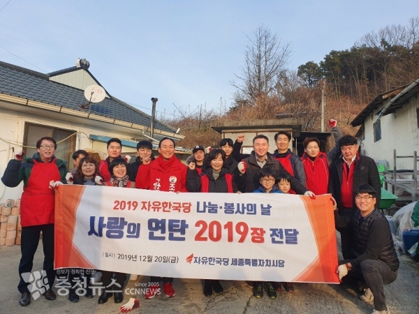 자유한국당 세종시당(위원장 송아영)은 20일 세종시 연동면 소재 도움이 필요한 이웃을 찾아 사랑의 연탄 나눔 봉사활동을 실시했다.