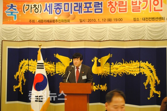 ‘세종미래포럼’이 12일 오후 7시 대전컨벤션센터에서 오노균 교수와 박광기 교수를 주축으로 만든 정부의 세종시 수정안 발표 이후에 충청의 민심을 대변하고 사회전반에 걸쳐 나타나고 있는 분열과 갈등을 극복하여 세종도시의 미래 발전을 위한 정책연구와 개발 및 실천을 위한 민간포럼이 출범했다.