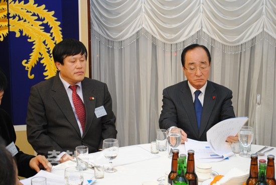 ▲ 세종시 정신과 철학 계승 ‘세종미래포럼’ 발족식 오노균 교수 와 심대평 의원