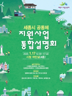 세종시(시장 이춘희)와 세종시교육청(교육감 최교진), 세종시인재육평생교육진흥원(원장 임각철)이 오는 17일 16시 시청 여민실에서 2020년 공동체 지원 사업 통합설명회를 개최한다.