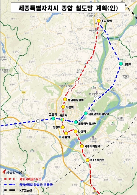송아영 자유한국당 세종시당 위원장은 16일 세종시청 브리핑룸에서 기자회견을 열고 "세종 지하철 1호선(대전 지하철 1호선 연장) 노선 변경과 광역도시철도망 계획 변경"을 촉구했다.