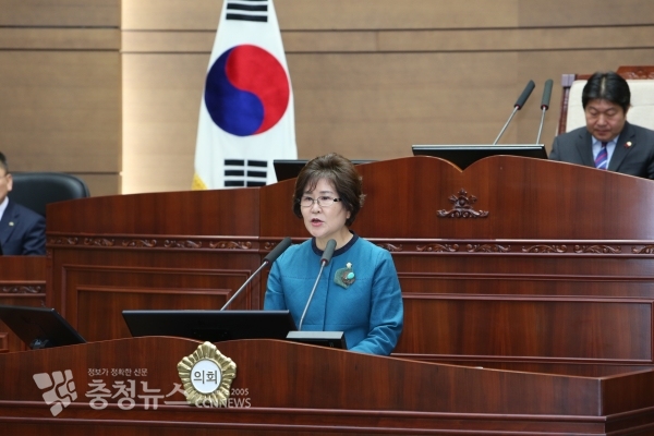 5분 발언하는 김월영 천안시의회 의원 / 충청뉴스 최형순 기자