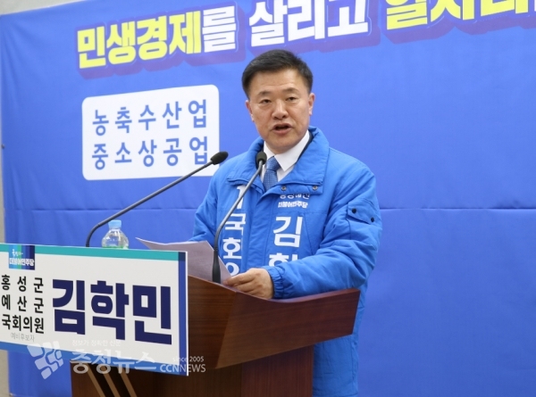 21대 총선에 출마하는 김학민 예비후보(더불어민주당, 홍성예산)가 홍성·예산 인구감소 문제를 해결하겠다고 강조했다.
