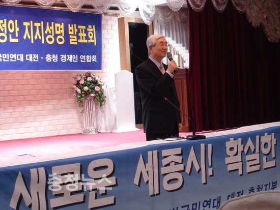 장영철 범국민연대 공동의장은 "행정도시보다는 교육과학교육도시로 유명대학과 대기업이 몰려오면 양질의 일자리가 생겨 도시가 살아나고 맥박이 뛰어 움직이는 도시가 될수 있다"고 강조했다.